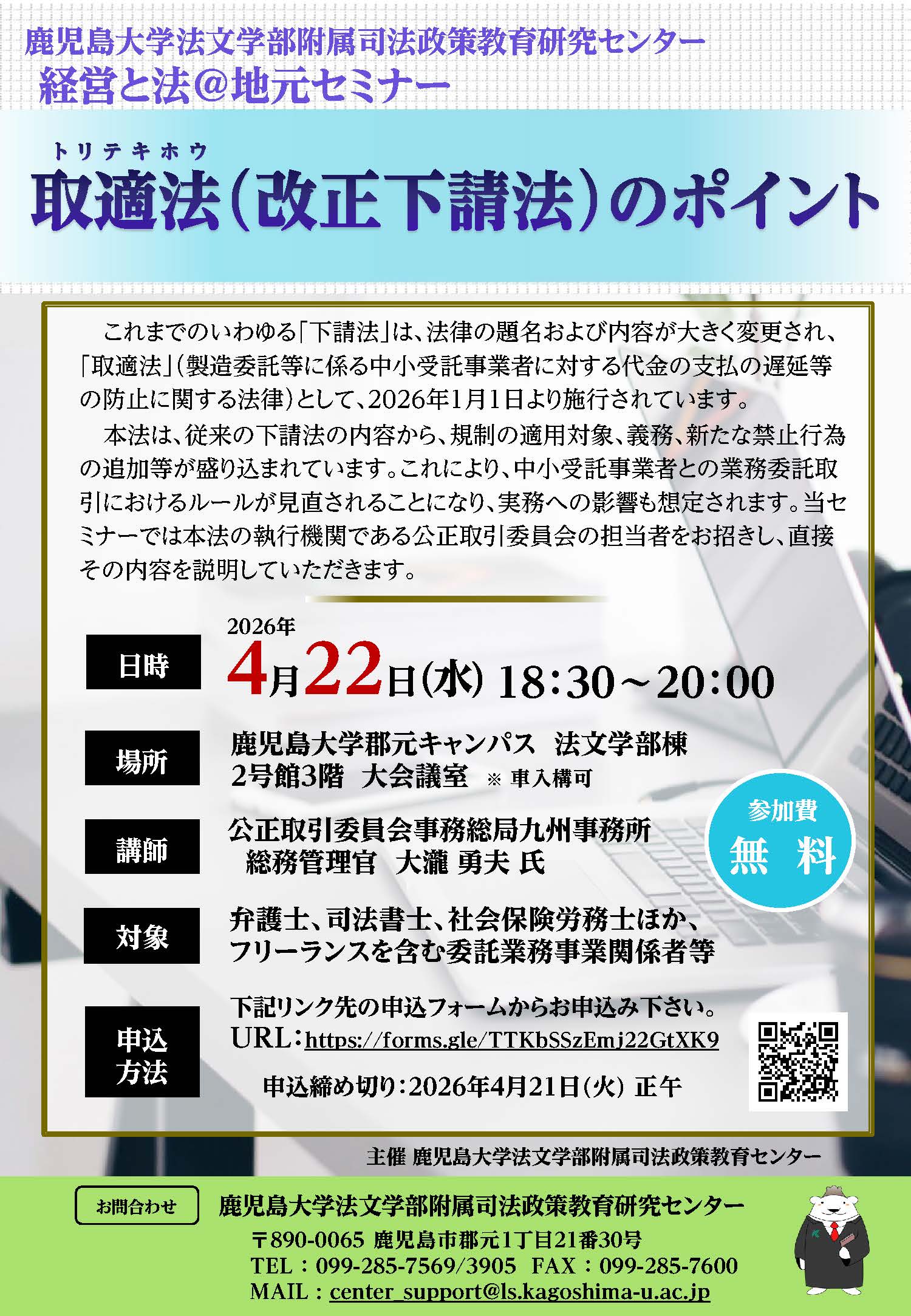 【問合せ先】鹿児島大学司法政策教育研究センター
